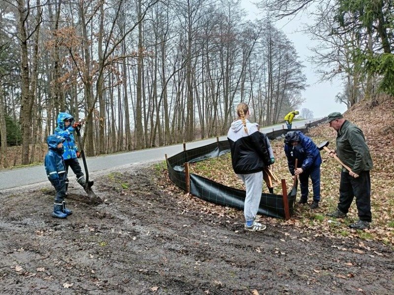 Jarní tah žab se nezastaví kvůli počasí, a jak se ukázalo, dobrovolníci z Dobronic u Bechyně také ne. Přestože pršelo a bylo chladno, sešla se skupina místních, aby podél silnice postavila dočasné zábrany pro migrující obojživelníky.