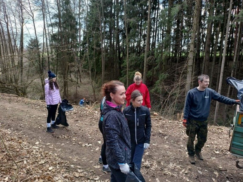 Těžká technika odkryla věci, které měly zůstat dávno zapomenuté – staré kusy železa, plastů, skla a všeho možného, co do lesa nepatří. A tak se v pátečním odpoledni sešla parta místních, vzala pytle, rukavice a dobrou náladu a vyrazila „na poklady“. Nebyly to poklady, které by člověk chtěl najít, ale o to větší radost byla je společně odnést tam, kam patří.